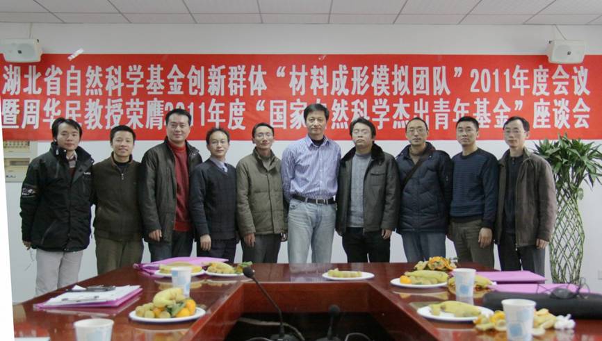2011年12月28日,由 “材料成形及模拟团队”承担的湖北省自然科学基金创新群体项目“面向自主创新的汽车关键部件成形过程智能化模拟与工艺优化的研究”2011年度工作会议暨周华民教授荣膺2011年度“国家自然科学基金杰出青年基金”座谈会在材料成形及模具技术国家重点实验室C306举行。