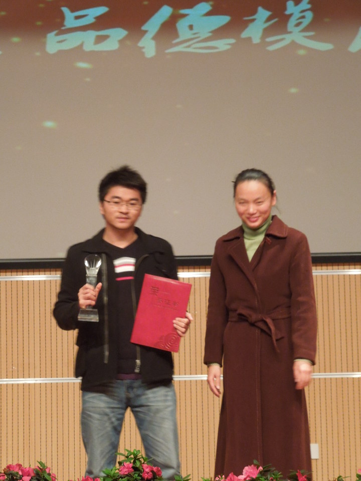 11月23日晚,校第五届研究生品德模范颁奖典礼隆重举行。437ccm必赢国际首页欢迎您博士生陈朝吉获选。颁奖典礼上,院党总支副书记黄贝娜为陈朝吉颁奖。